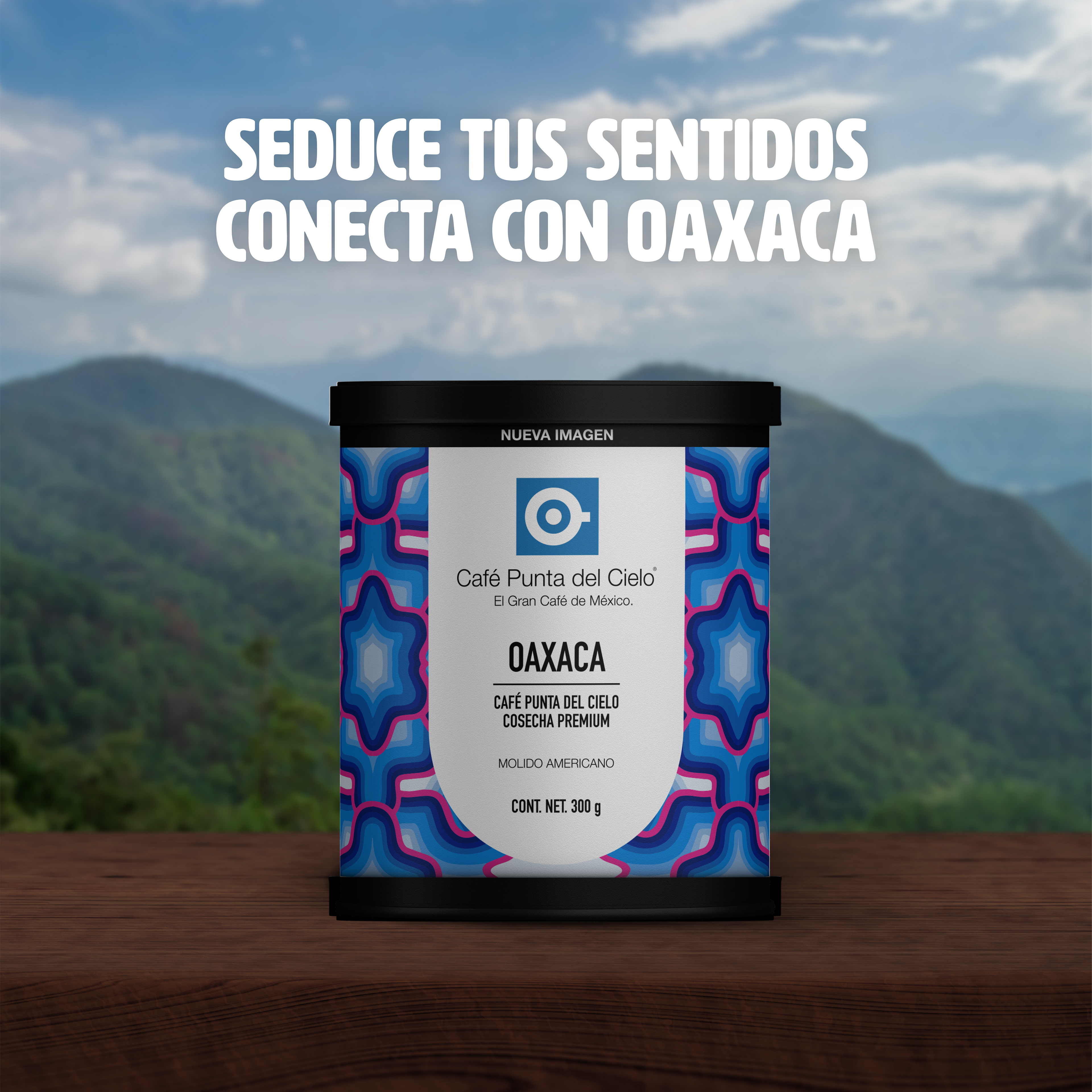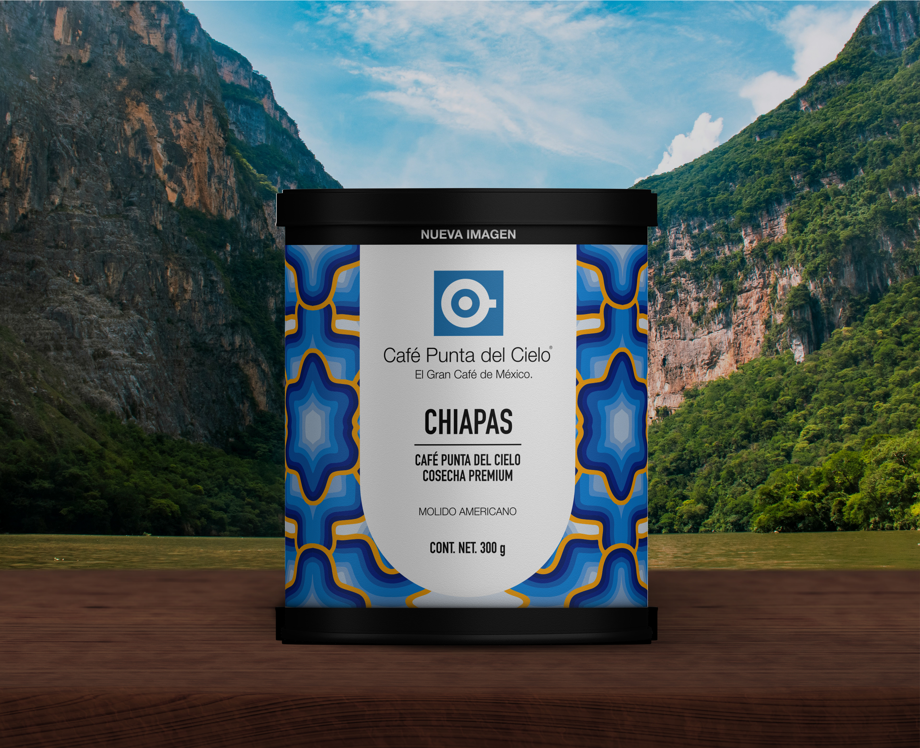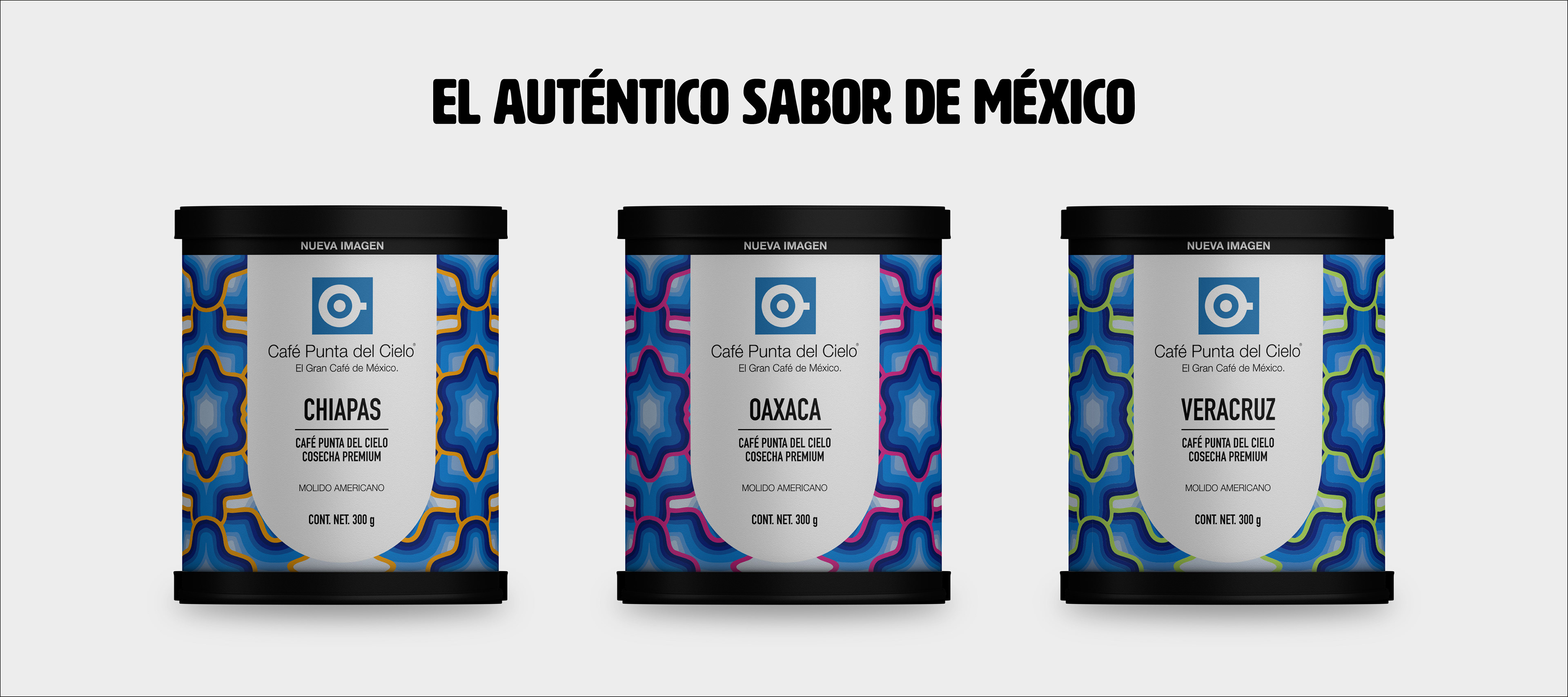 Rediseño de etiquetas para latas de la línea Cafés de México de Punta del Cielo. Diseño de stand y materiales para exposición