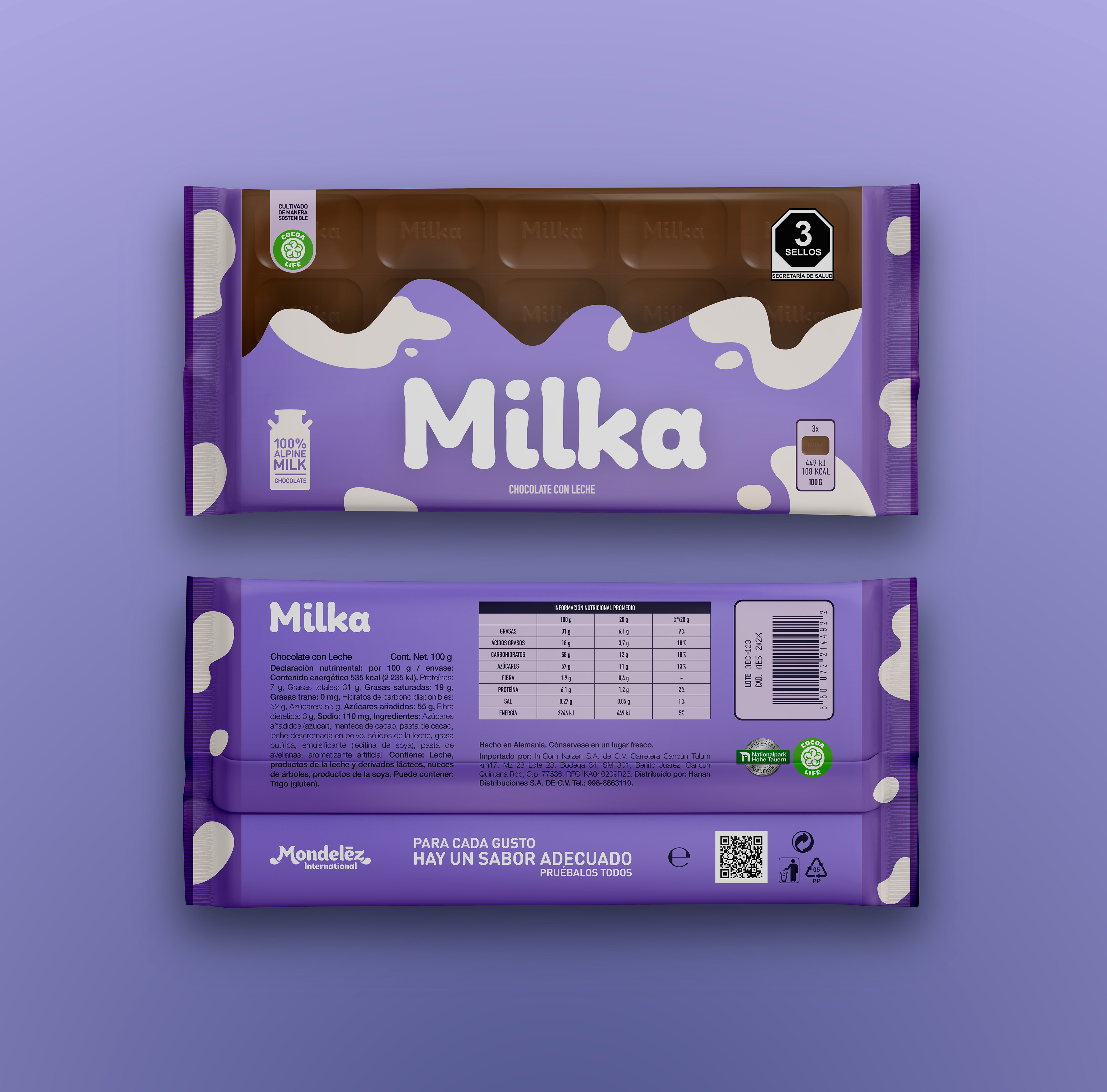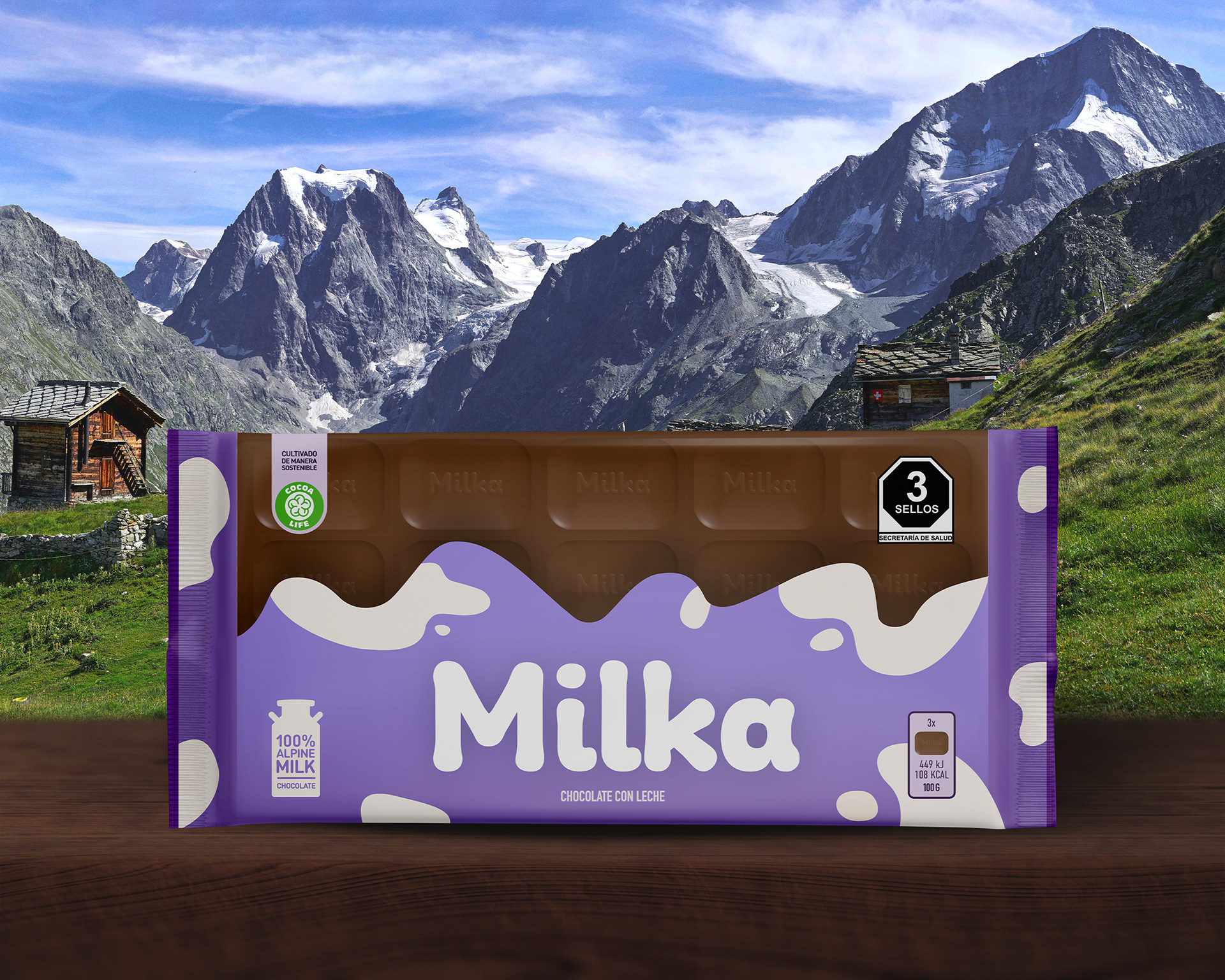 Rediseño de marca y empaque para Milka con aplicación en diseño de cartel publicitario